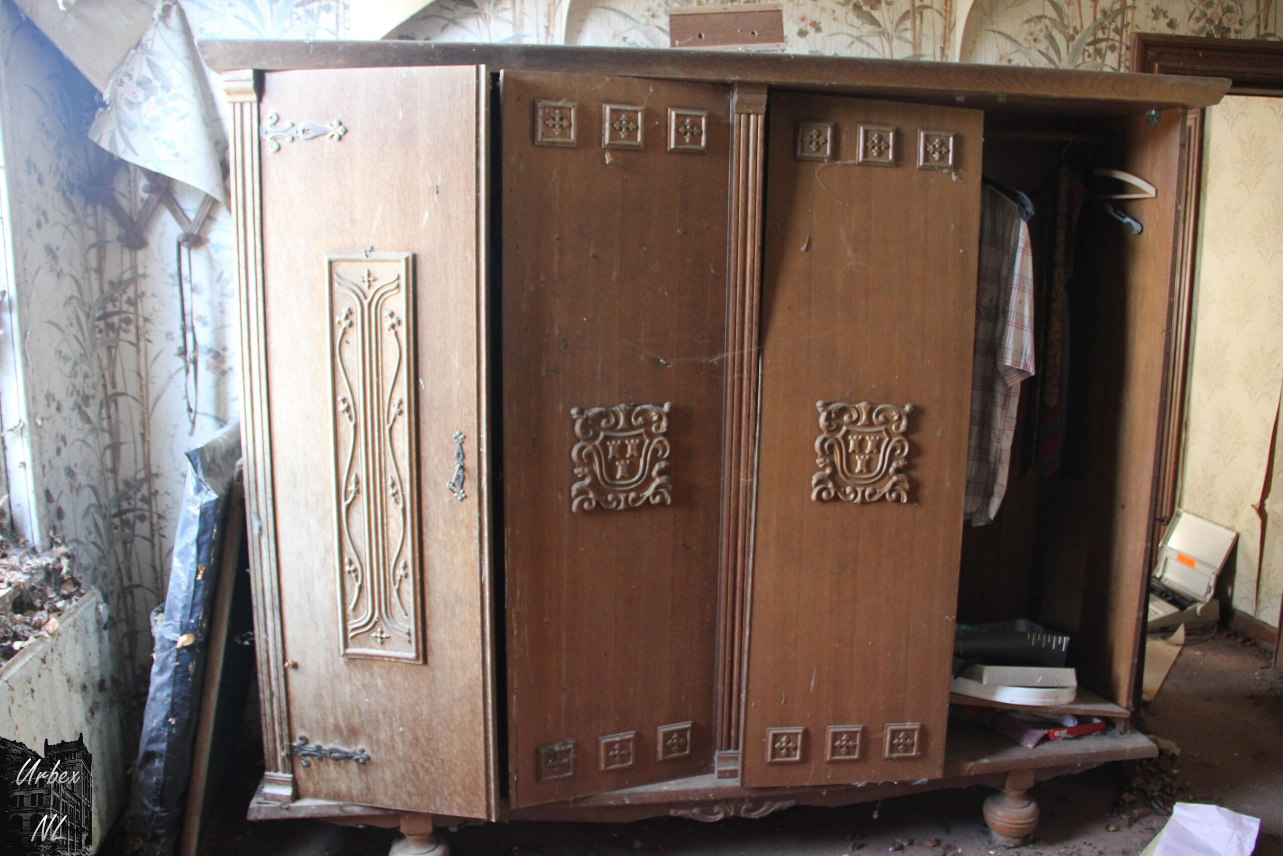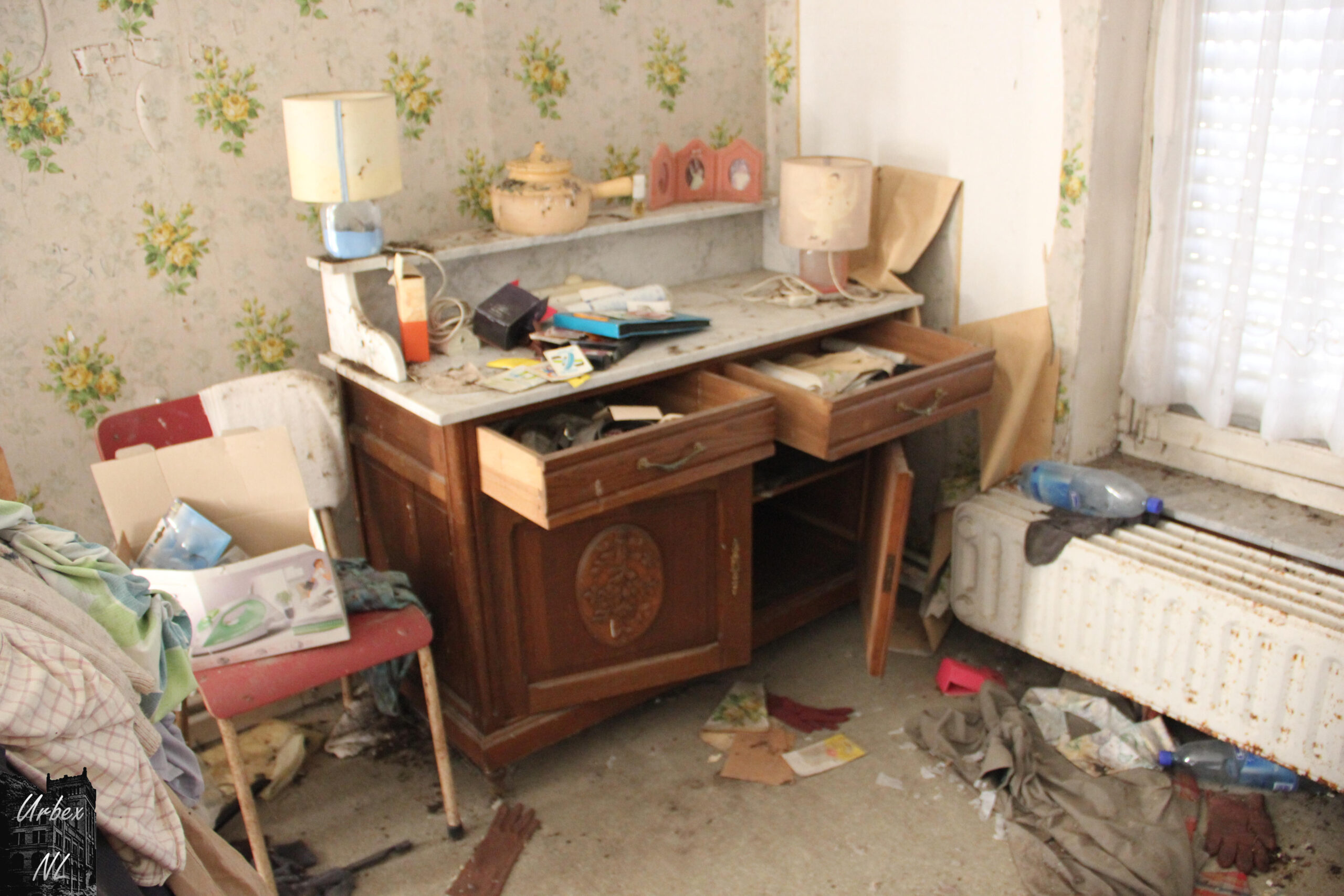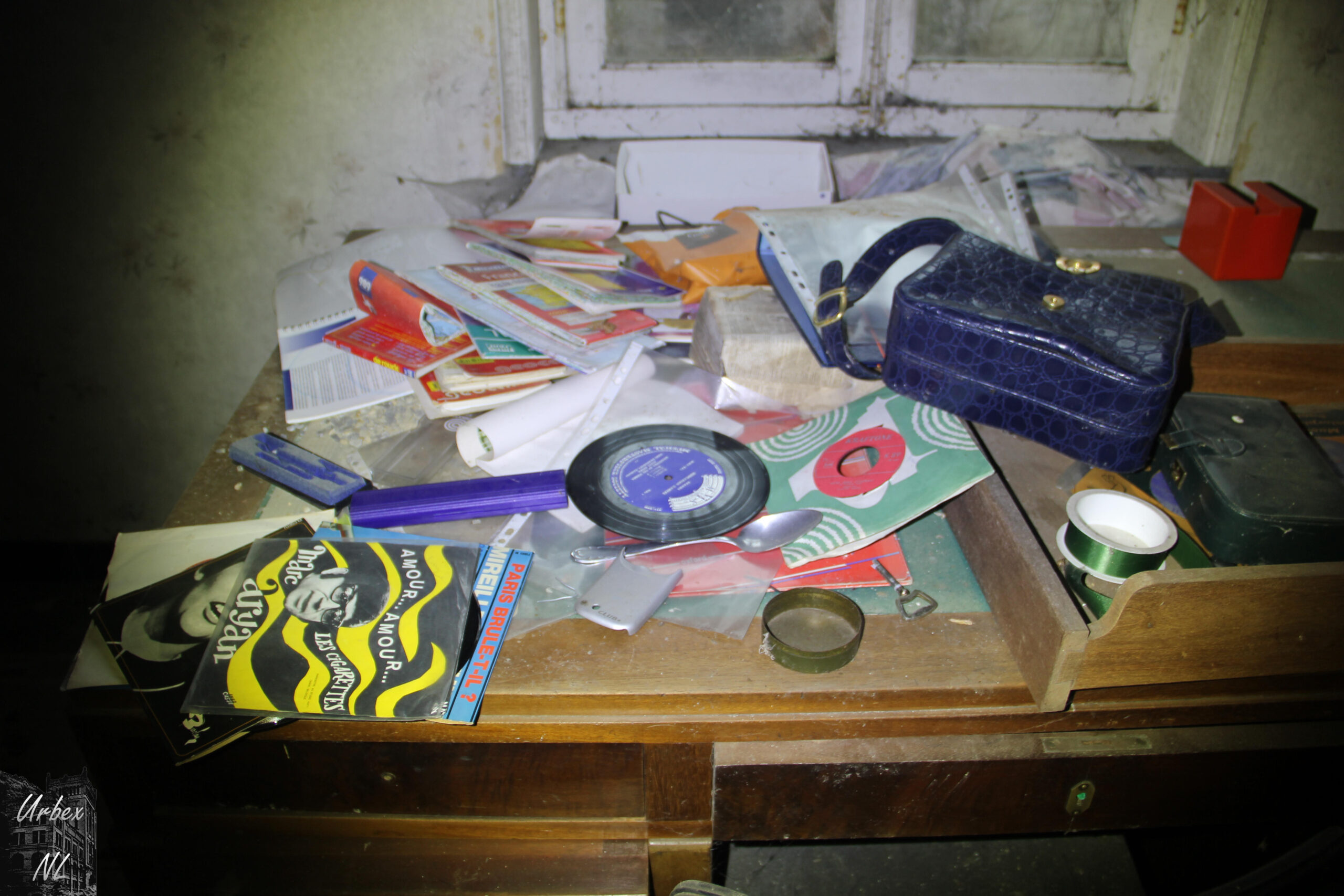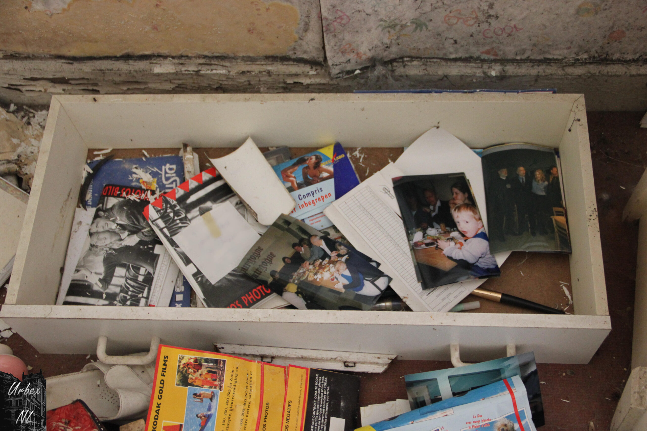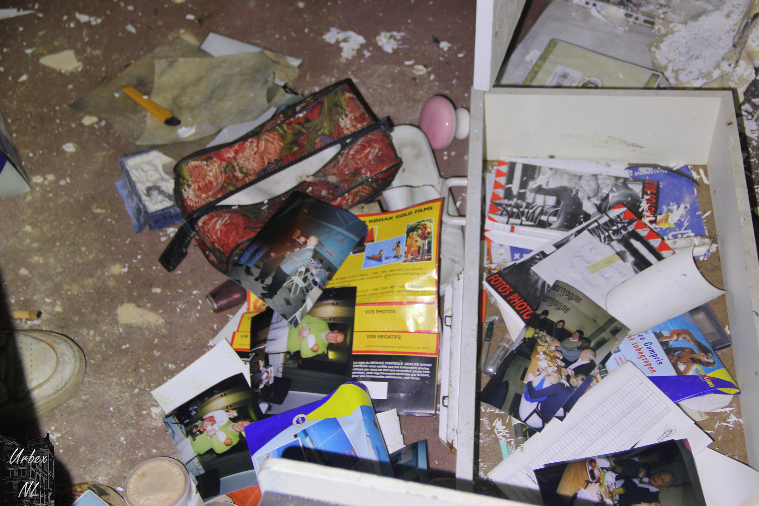 Een huis geweest dat al ongeveer zeven jaar leegstaat… Binnen lagen veel schilderijen, foto’s en negatieven, verspreid over verschillende kamers. Sommige schilderijen stonden nog, andere lagen op de grond of tegen de muur.