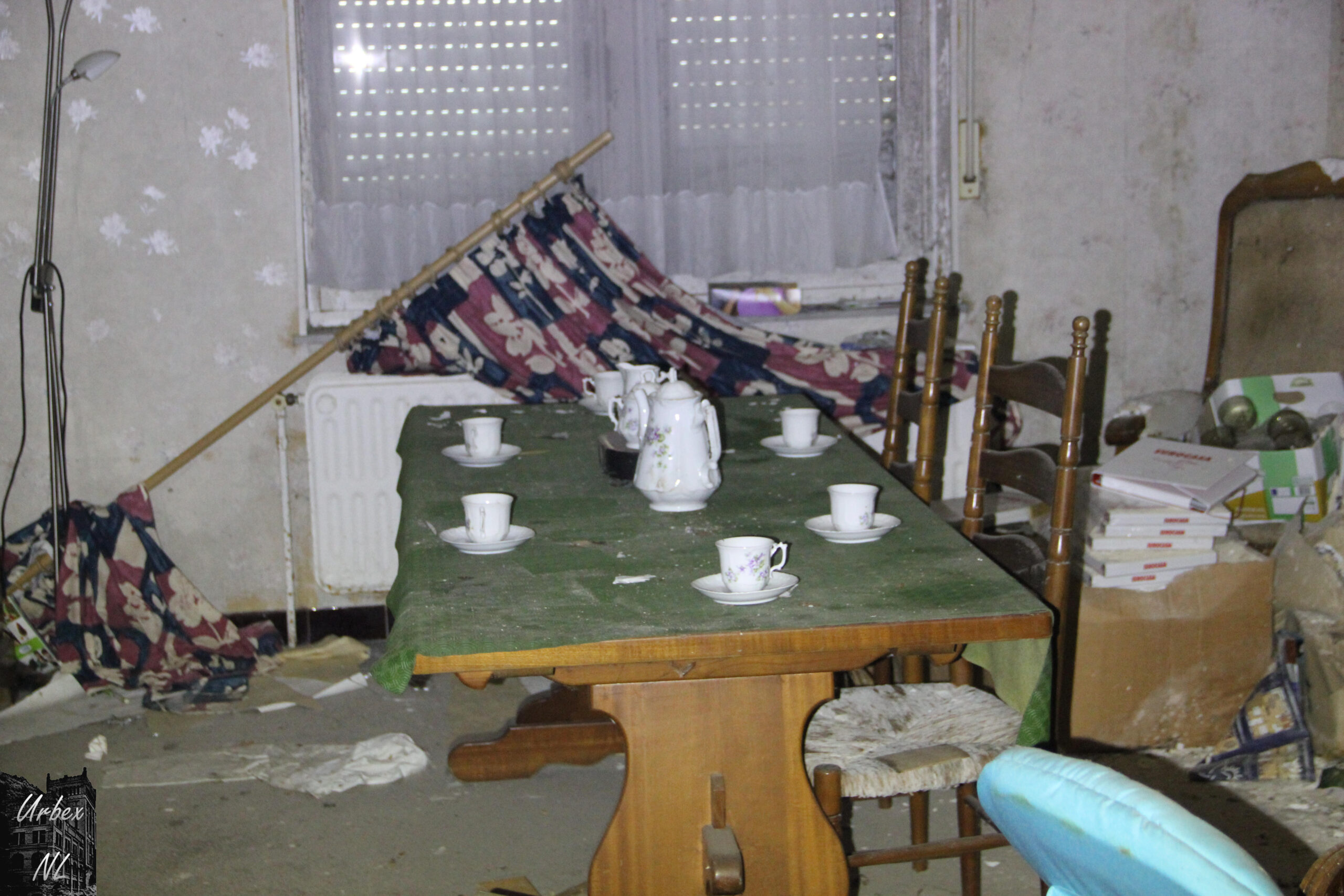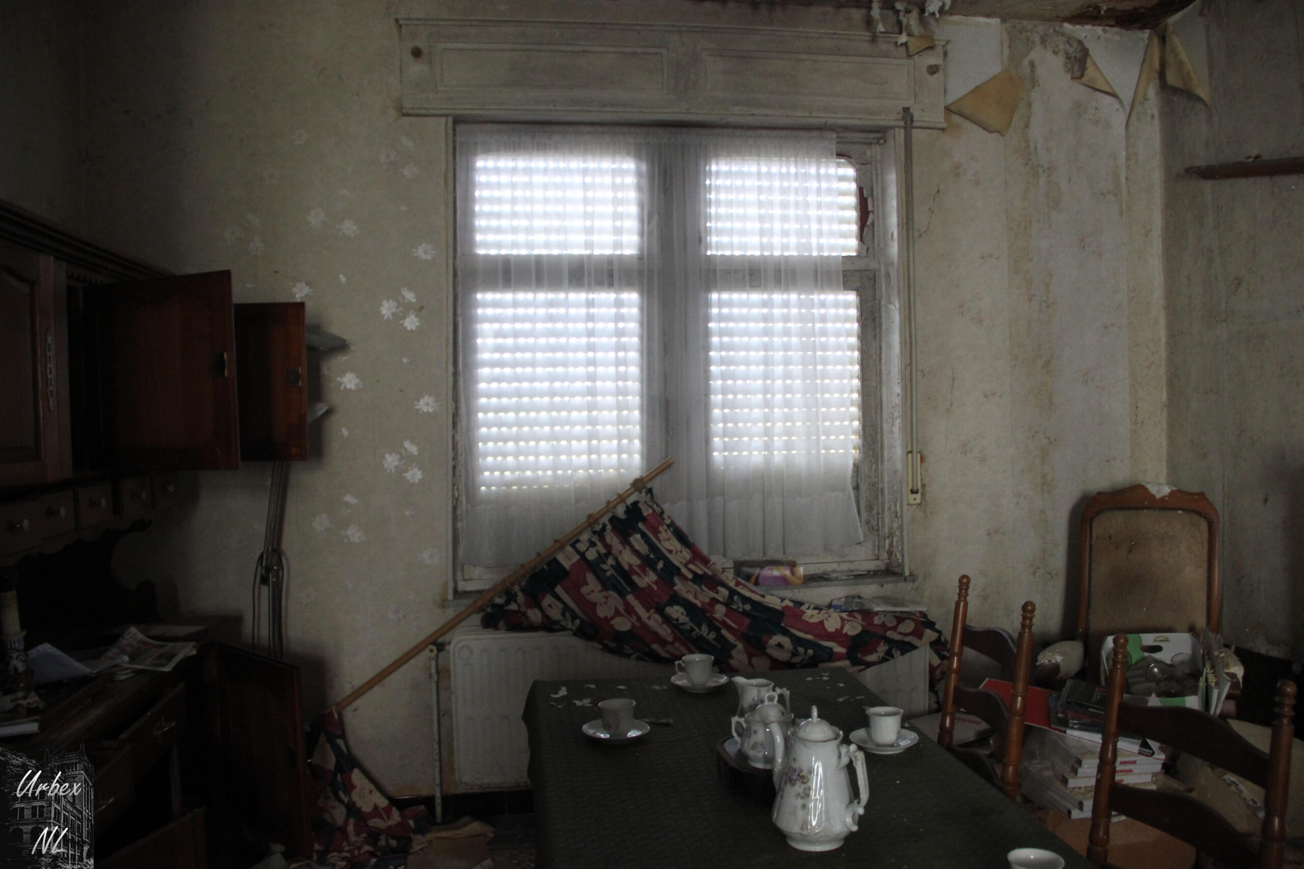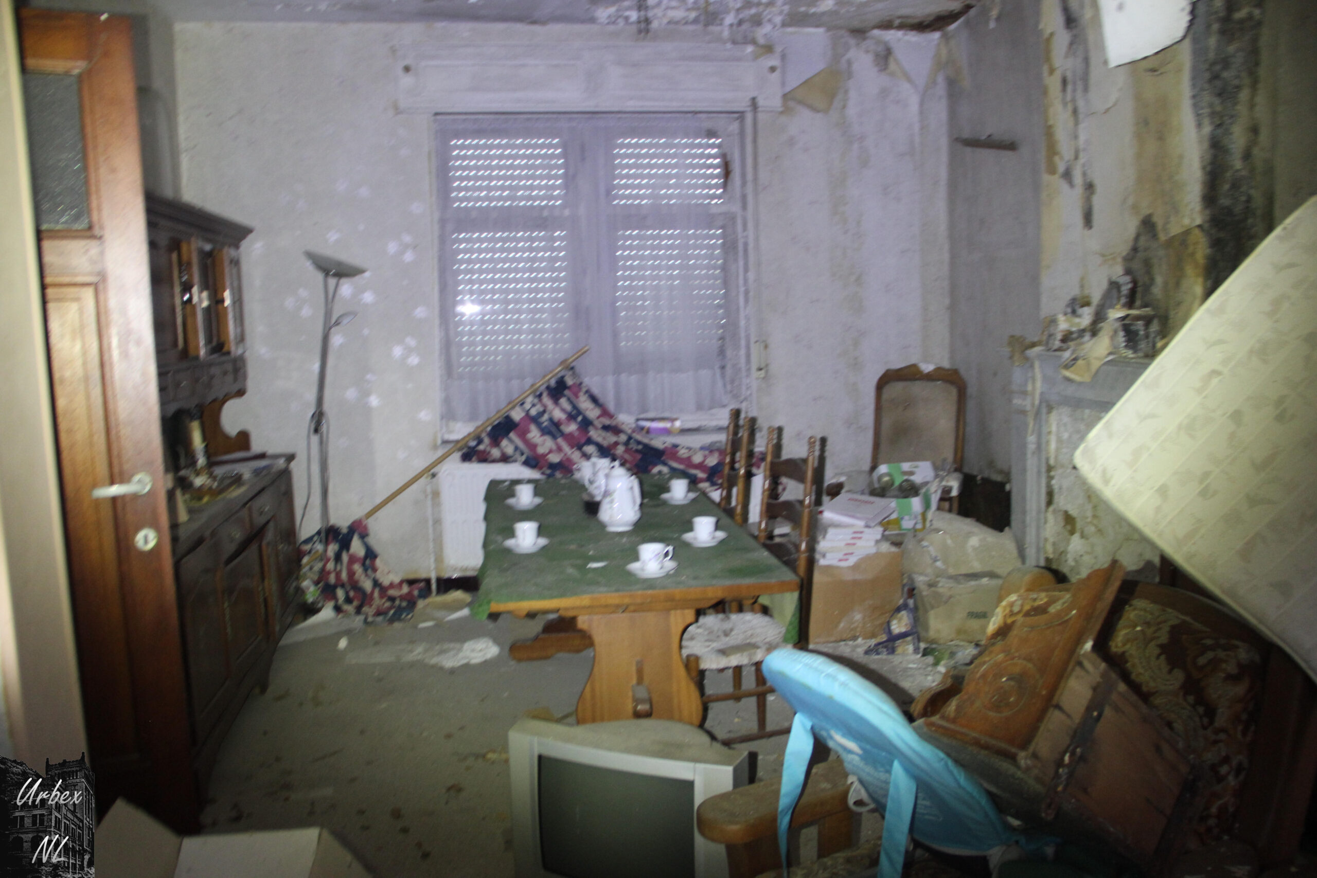 Het huis is redelijk in verval voor 7 jaar , met vochtplekken, afbladderende verf en deels ingestorte plafonds. Er zijn weinig sporen van recente bewoning, maar het lijkt erop dat er soms nog iemand komt. Er is geen informatie over het pand te vinden online..