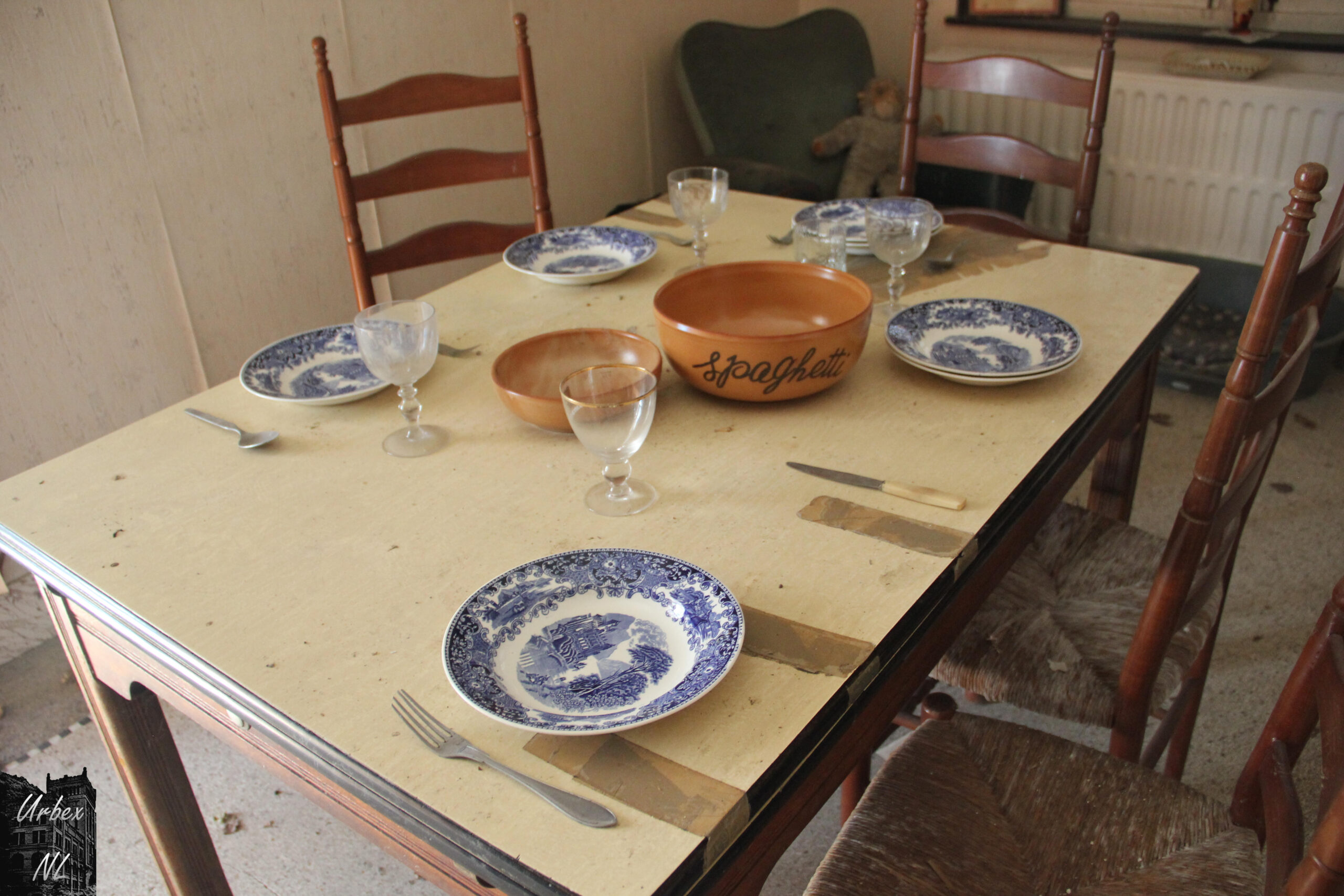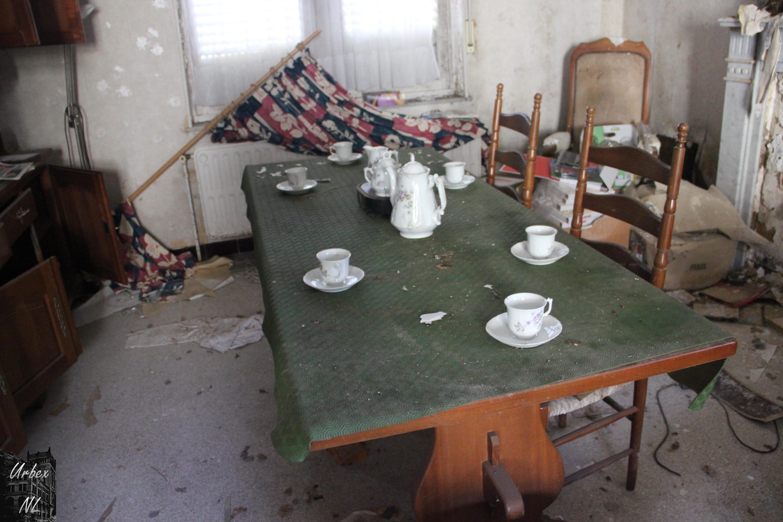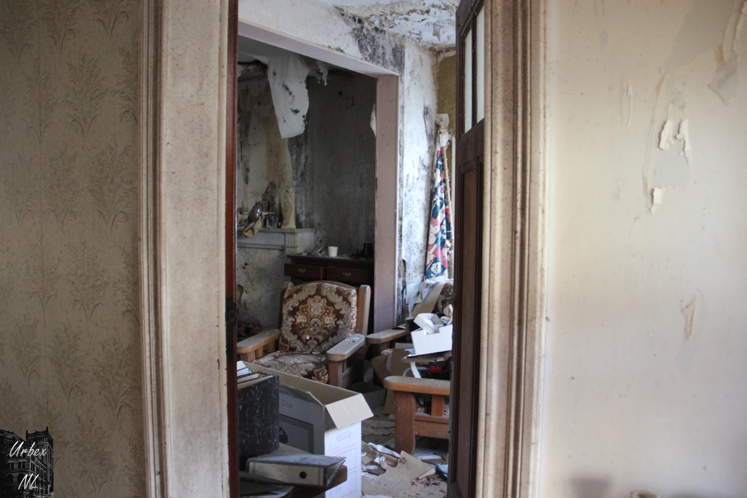 Het huis is redelijk in verval voor 7 jaar , met vochtplekken, afbladderende verf en deels ingestorte plafonds. Er zijn weinig sporen van recente bewoning, maar het lijkt erop dat er soms nog iemand komt. Er is geen informatie over het pand te vinden online..