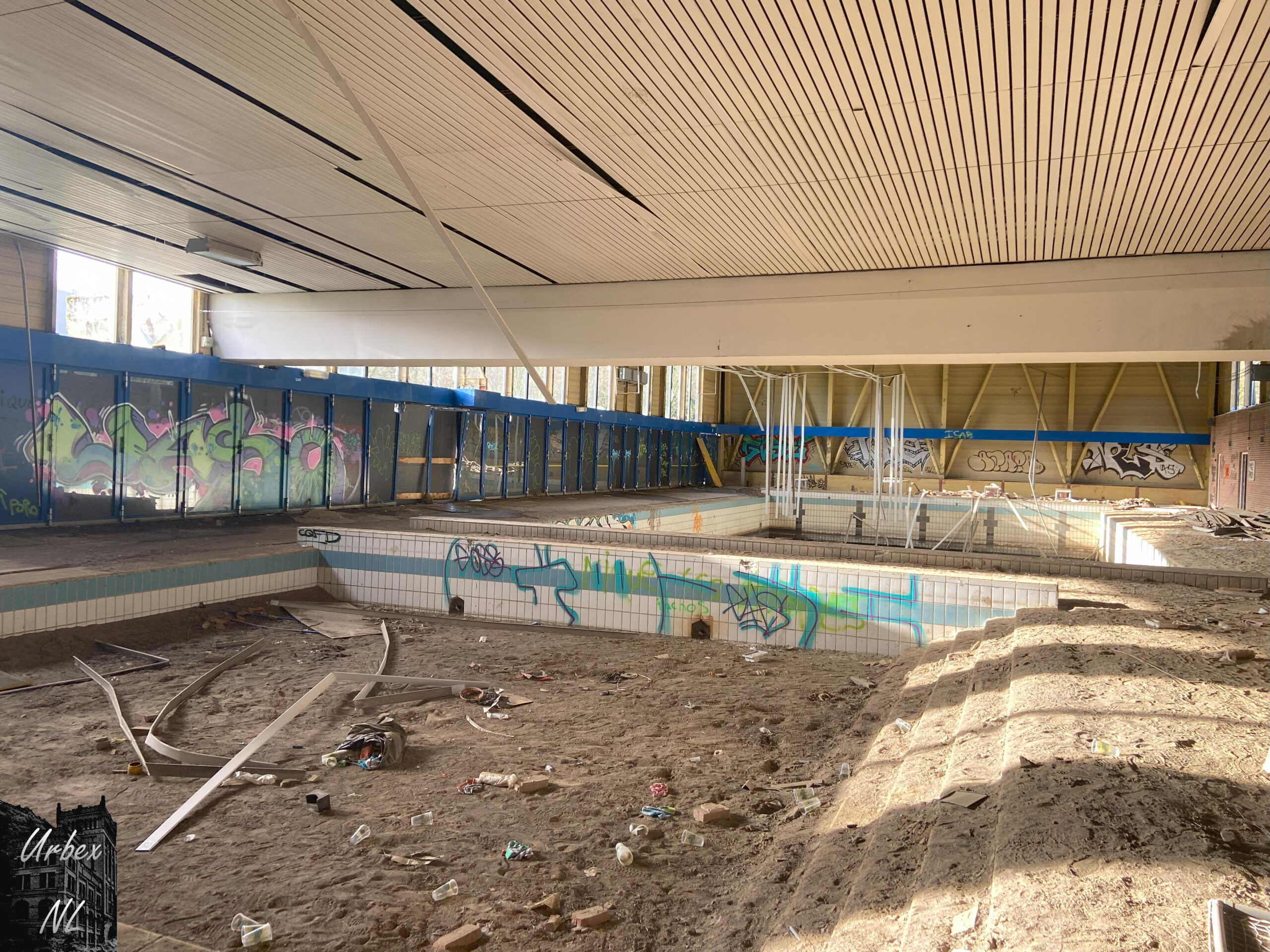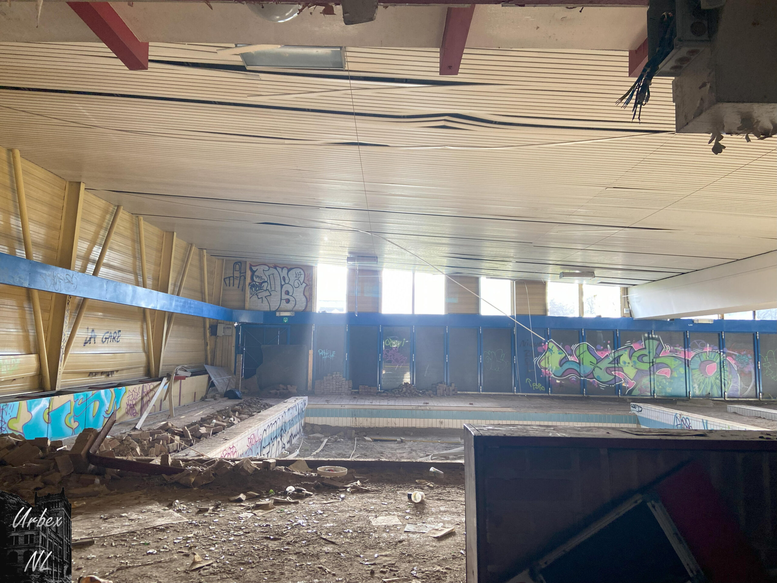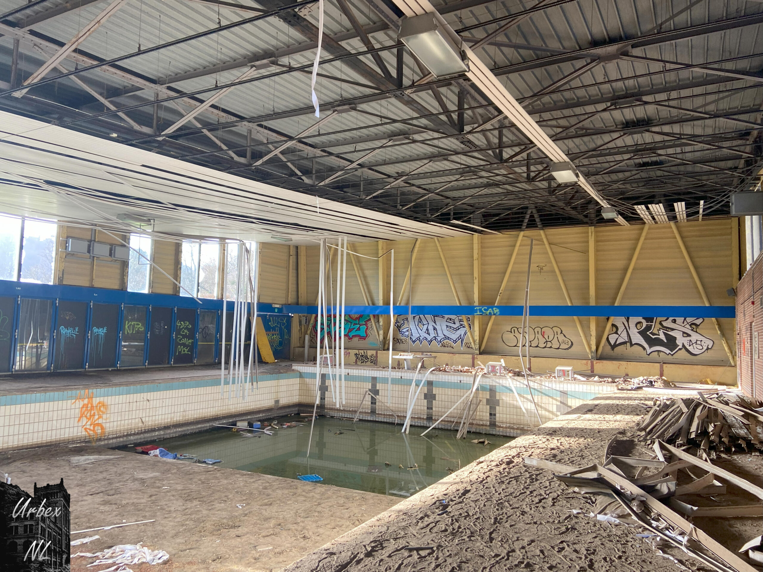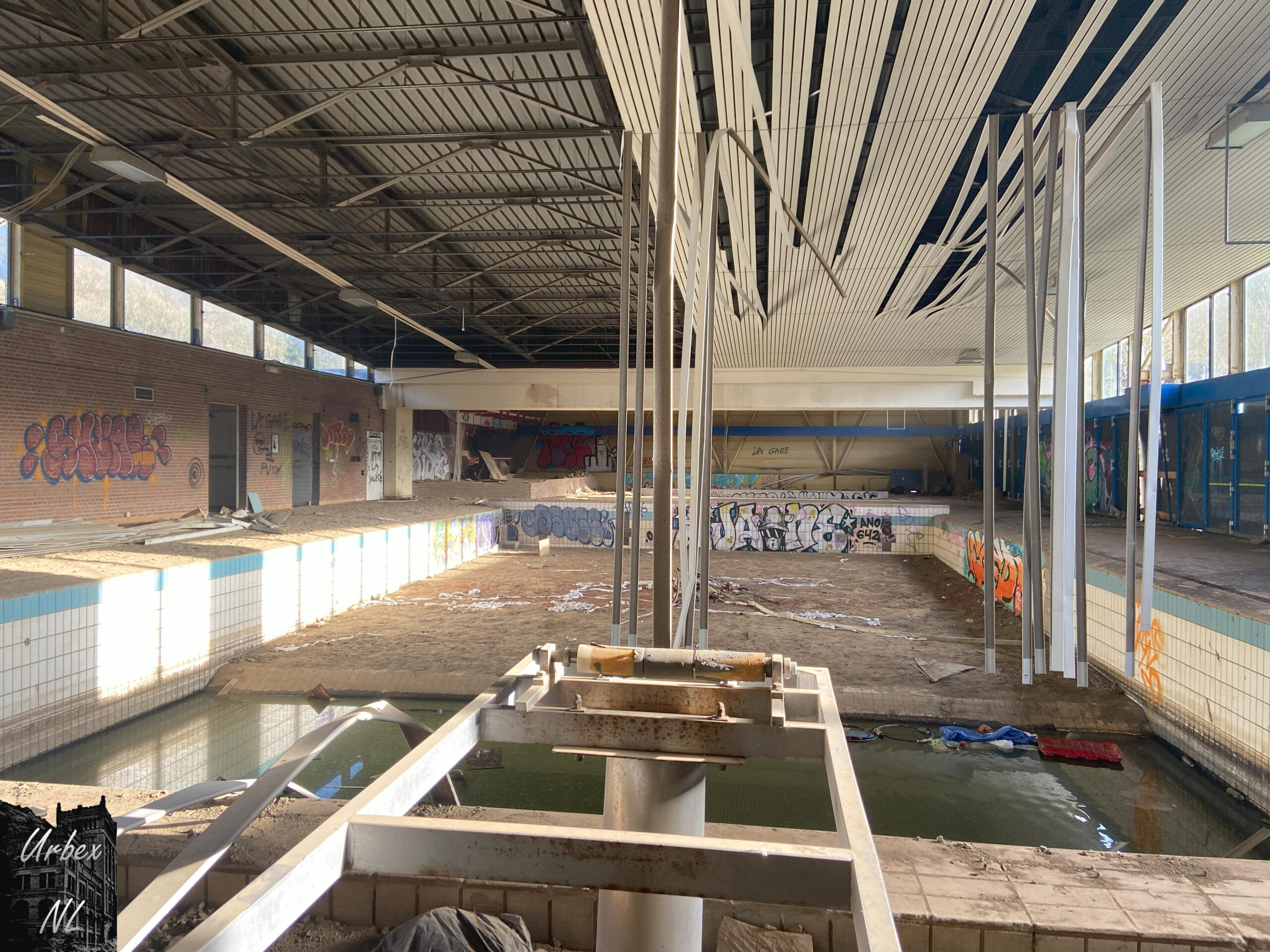 Het verlaten zwembad rondom Luik, heeft een geschiedenis die contrasteert met de luxueuze thermale baden van de regio. Het zwembad sloot definitief na de zware overstromingen in 2021, die aanzienlijke schade veroorzaakten. Deze natuurramp versnelde de teloorgang van een faciliteit die al minder werd gebruikt en niet langer rendabel was.
